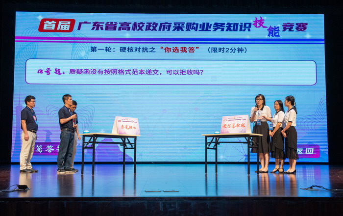 本次大赛以“岗位大练兵,政采我最行”为主题,旨在深入贯彻政府采购制度改革精神,切实提高采购人专业化采购能力,服务教育高质量发展。赛事共吸引来自全省67所高校的201位选手参加。我校参赛队员在扎实做好日常工作保障学校各项重点任务稳步推进的同时,利用业余时间积极训练备赛,力求争取佳绩。首轮线上初赛后,我校代表队位居前20名,挺进复赛。竞赛复赛当晚,20支参赛队伍同台竞技,我校代表队不畏强手,沉着应对,奋勇拼搏,经过硬核对抗、群雄角逐等环节,杀入最后10强,展现了莞工采购人的风采。