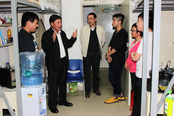当晚,周致纳在我校党委委员、城市学院副院长杨敏林的陪同下,来到学生宿舍看望同学,和他们亲切交谈,详细地了解同学们在学习、生活上所遇到的问题,并对同学们的疑惑一一进行解答。周致纳语重心长地告诫同学们要坚定信念,树立远大志向,培养高尚的品德,把握学习的机会,一笔一划把“人”字写正,努力成为对社会有用的人才。