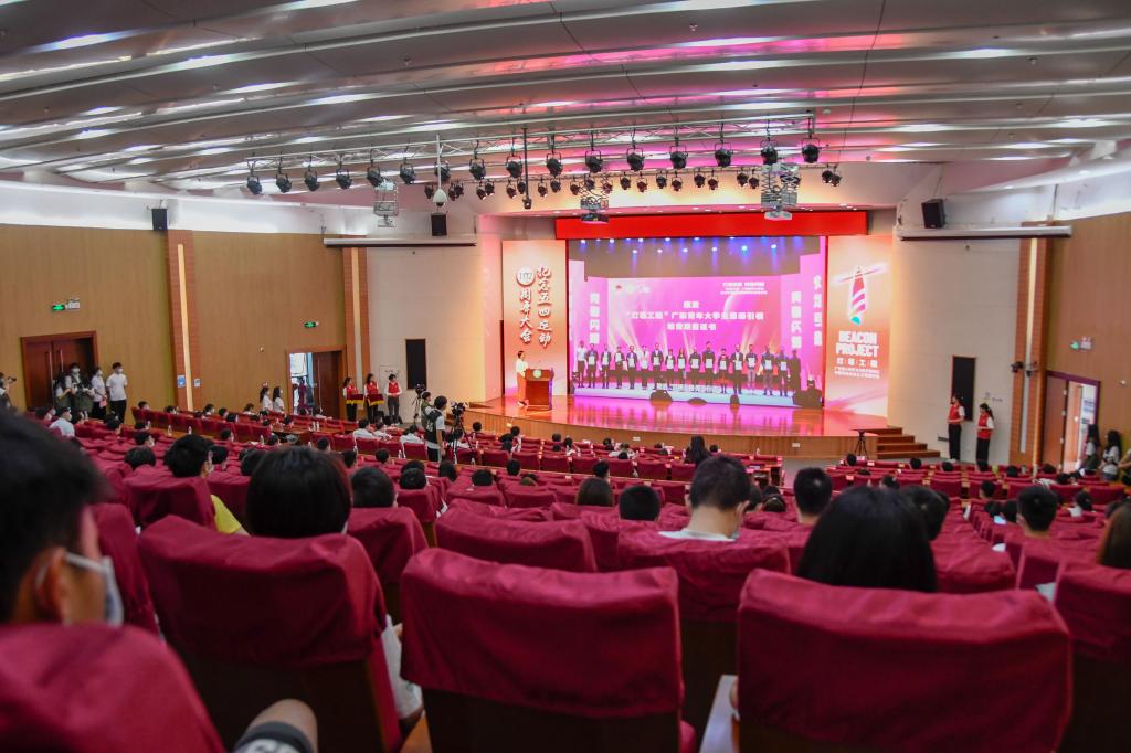 在灯塔之光环节,赵崇光和我校师生代表围绕“科创无止境,踏浪新时代”这一主题进行了分享。赵崇光从“锐意进取、开拓创新”“实事求是、埋头钻研”“爱国奉献、传承育人”三个方面回顾了散裂中子源团队的成长与科技研究背后的艰辛。他鼓励青年人要努力学习科学知识,培养吃苦耐劳、团结协作的优良品质,为祖国的发展作贡献。严前海则以《阅读、景观与心灵地图》为题进行了漫谈。他认为高质量的阅读是突破性的选择,当代青年要走出阅读的“舒适圈”,培养良好的阅读习惯,勤奋学习。在阅读中感受人类智慧的光芒,构建自我丰饶的心灵地图。作为学生代表,来自电子工程与智能化学院的余克麟和来自经济与管理学院的陈仁浩分别讲述了自己的考研故事,激励同学们勇敢追梦,奋勇向前。