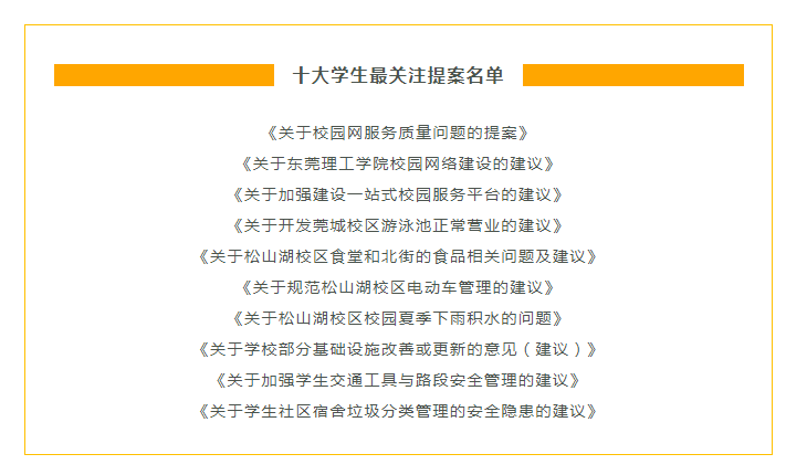 会前,第十九次学代会、第二次研代会筹备组精选出17份本科生优秀提案、3份研究生优秀提案作微信巡展,并在学生群体中举行了为期两天的投票,最终选出《关于校园网服务质量问题的提案》等10份学生最关注的提案。