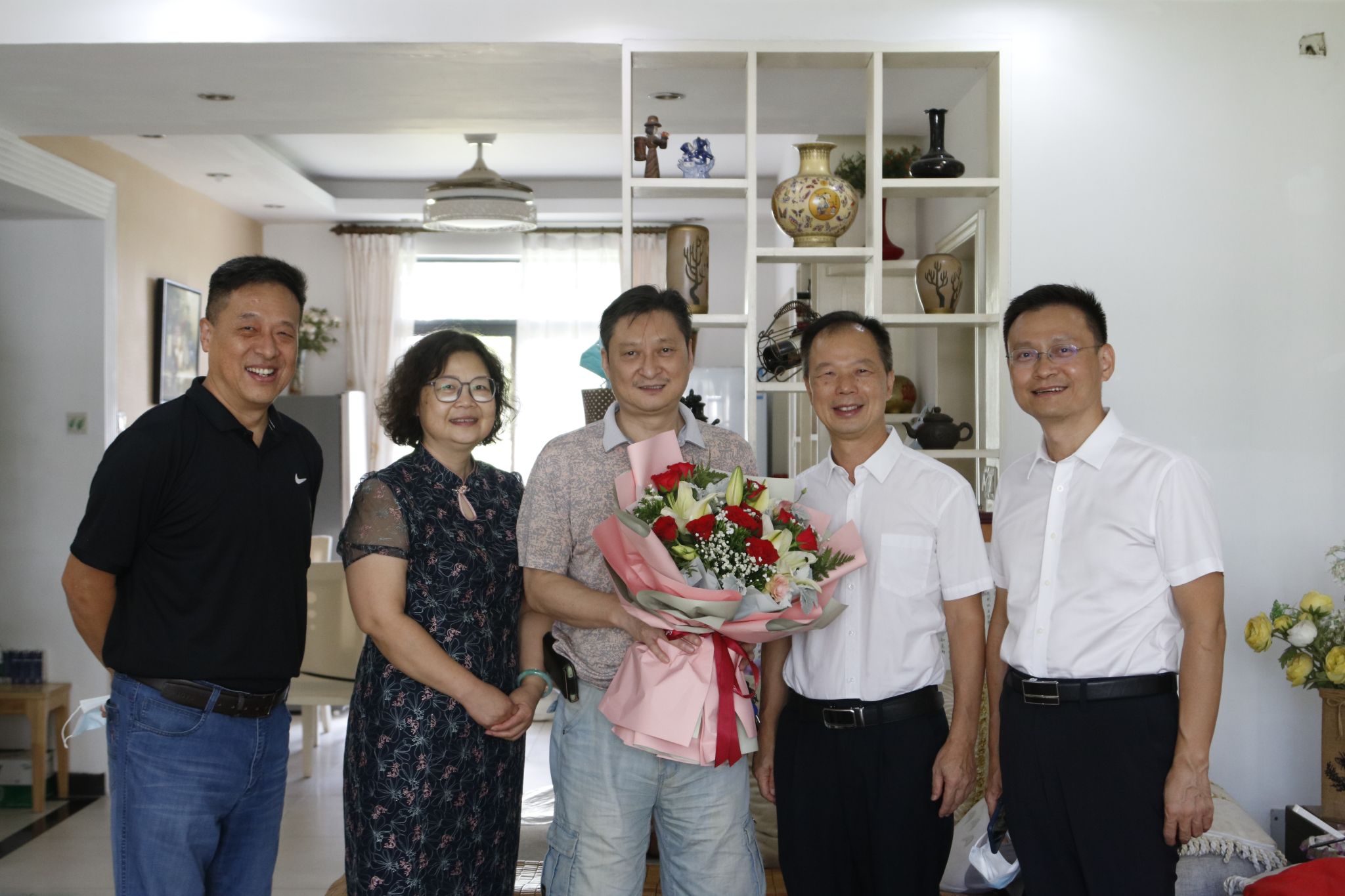 在宋跃教授住处,李忠红详细了解宋跃教授的生活和工作近况,向他送上节日祝福,感谢他为学校发展做出的努力和贡献,并希望他能再接再厉,努力培养出更多的优秀青年教师和优秀学子,为学校事业发展贡献智慧力量。在了解到宋跃老师的生日也是在教师节当天时,大家一起为他送上了生日祝福。