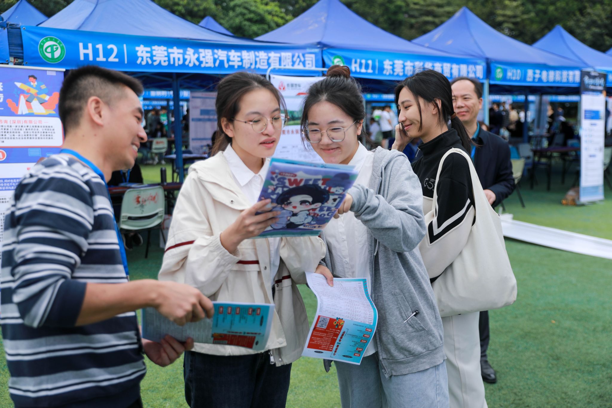 上午9:00,本次东莞地区专场招聘会正式开启。蓝色帐篷井然有序排列着,招聘人员陆续进场,做好现场布置,等待同学们的到来。求职者们手持简历,带着自信和朝气,早早来到现场寻找心仪的企业和岗位。