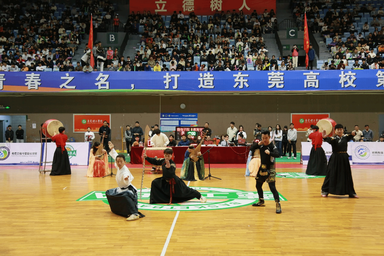 决赛当晚,松山湖校区体育馆内人声鼎沸,学校党委副书记、校长马宏伟,学校党委委员、党委宣传部部长邹琼等领导嘉宾与学生球迷共同到决赛现场为球员加油打气。随着裁判的一声哨响,2024年莞工UBA冠军争夺赛在教育学院(师范学院)和国际微电子学院之间展开。双方球员迅速进入状态,展开激烈的攻防大战,传球、突破、抢断每一个动作都扣人心弦,每一个进球都引来球迷的阵阵欢呼。除双方球员场上精彩比赛外,总决赛现场带来了花样篮球操、琵琶武术融合节目与街舞等形式丰富的暖场节目表演,赢得现场观众阵阵掌声。经双方四节比拼,教育学院(师范学院)凭借场上更优秀的表现,夺得冠军。