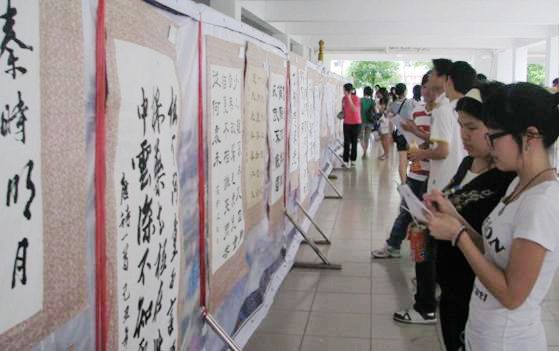 4月23日下午在7栋宿舍一楼举行的“金海湾杯”——“保护传统,守望家园”大型书画艺术展成了校园宿舍区的一大亮点。此次书画艺术展由计算机学院、师范学院、政法学院、动漫协会共同举办。