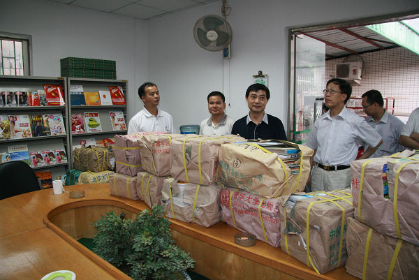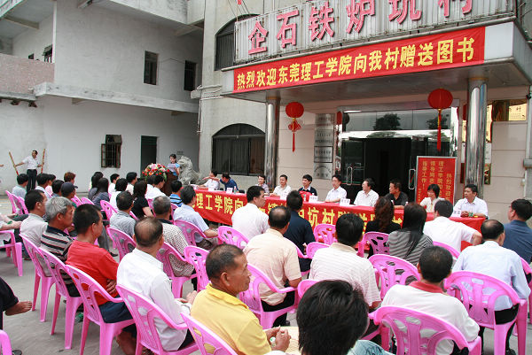 为支持农村基层文化建设,促进村民科学文化素质提高,支持我校干部李俊祺挂职所在的企石镇铁炉坑村正在建设的“农家书屋”,满足该村“农家书屋”对书籍的需要。5月21日,我校党委副书记王江水带领校组织部、图书馆领导一行前往铁炉坑村,向铁炉坑村“农家书屋”捐献图书5000余册。企石镇党委委员、纪委书记温志均,镇文化站站长黄柏祥,镇妇联副主席黄惠玲以及铁炉坑村党政干部出席了捐书仪式。赠书仪式后,王江水副书记一行与铁炉坑村干部进行了座谈,并参观了铁炉坑村“农家书屋”。