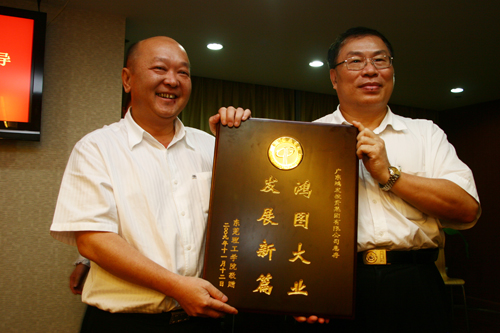 广东鸿发集团投资有限公司向我校赠送纪念品。