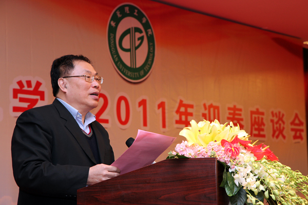 我校2011年迎春座谈会昨日晚间举行。校党委书记周致纳、校长杨晓西与全校正高职称教师、学科和学科方向带头人、中层干部等140多人齐聚一堂,畅叙2010年并肩作战的情谊,迎接2011年美好春天的到来,共同展望学校更加美好的明天。