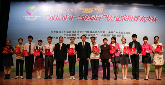 据了解,演讲比赛决赛12月6日晚在广州珠江宾馆举行;该演讲比赛由省依法治省办、省委宣传部、省教育厅、省司法厅、团省委主办,以“成长成才,与法同行”为主题,是今年我省第三个法治广东宣传教育周期间的一项重要活动。