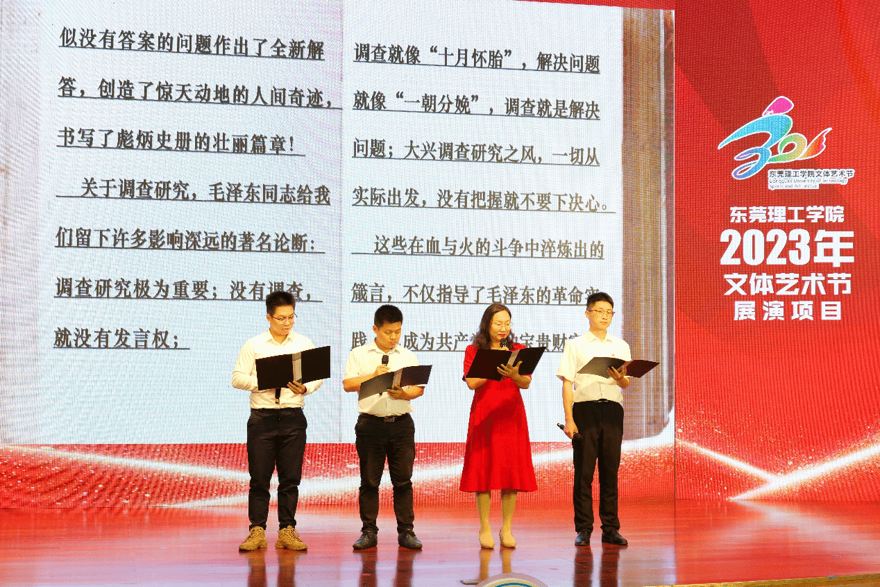 调查研究,是巩固党的执政之基的根本,是保持同人民群众血肉联系的纽带。被授予我校“五四青年奖章”的锂工正极团队师生代表李超、李利平、杨浩、周全诵读了《光明日报》刊登的经典文章《让大地赋我们无穷力量——写在全党大兴调查研究之际》,阐述调查研究的重要意义和深刻内涵。