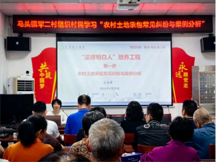 4月29日,法社学院法律系副主任吉海荣赴新丰县马头镇开展“法律明白人”培训讲座活动。吉海荣围绕农村土地承包问题,结合《中华人民共和国农村土地承包法》《中华人民共和国土地管理法》《农村土地承包合同管理办法》等法律法规,针对农村土地承包常发纠纷类型,开展以案释法,让参训人员从案件的解析和处理中学到法律知识,了解土地承包纠纷解决方法与途径。讲座后现场村镇干部和村民就自身所遇到的土地承包问题纷纷提问,吉海荣和校法律顾问龙凤兰为大家答疑解惑。