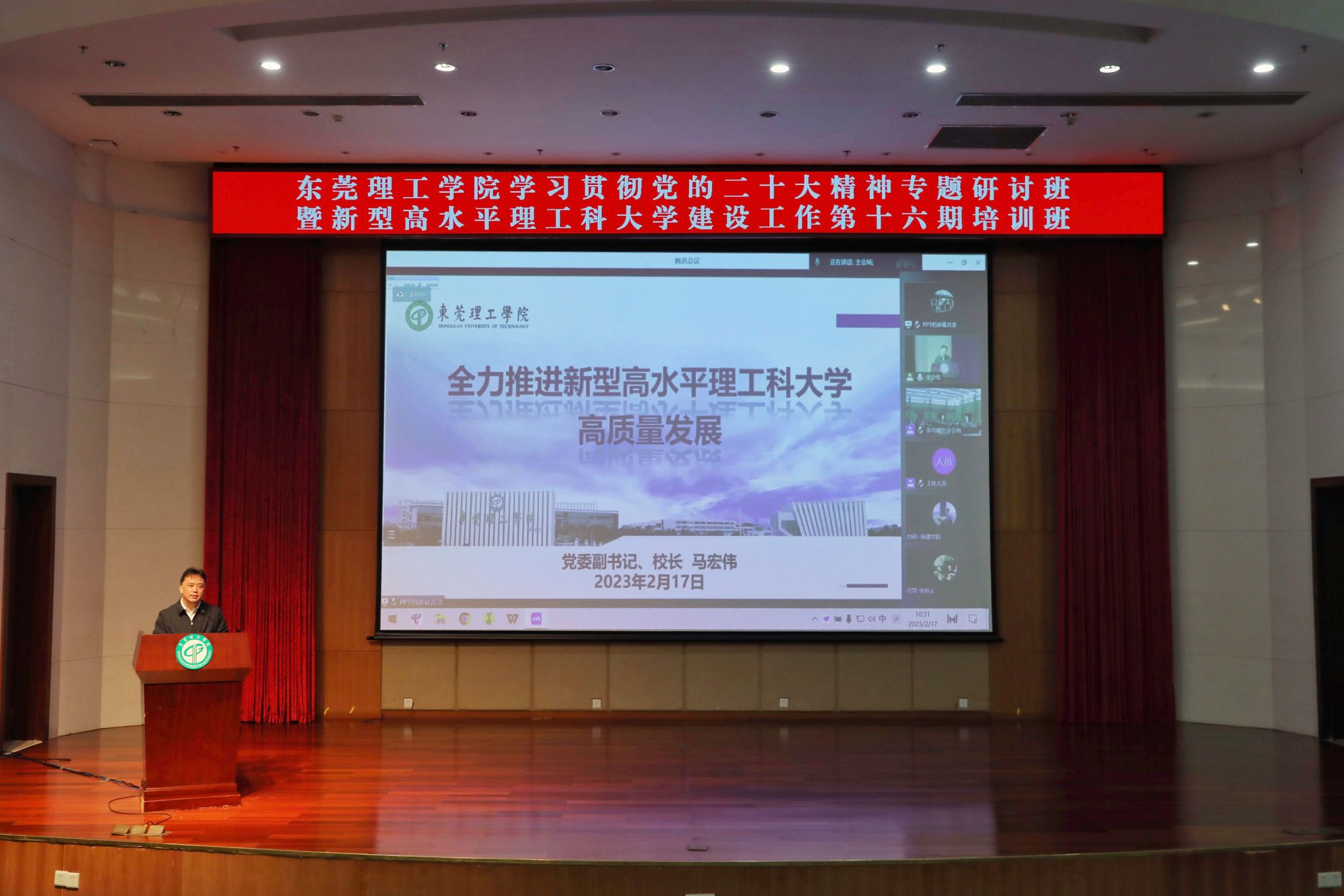 2月16日,学习贯彻党的二十大精神专题研讨班暨新型高水平理工科大学建设工作第十六期培训班在松山湖校区学术会议中心开班,吹响莞工新学期奋进的第一声号角。本期培训主题为以习近平新时代中国特色社会主义思想为指导,全面贯彻党的二十大作出的重大战略部署,认真贯彻省市高质量发展大会精神,加快推进新型高水平理工科...